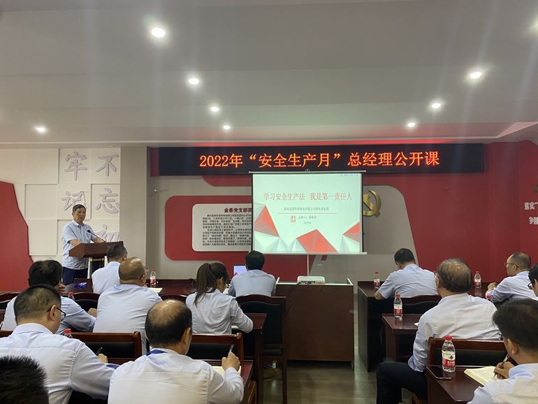 根据“安全生产月”活动方案,6月10日下午,总经理徐振华在化水楼三楼会议室举行了以《学习安全生产法,我是第一责任人》为主题的安全生产公开课,所有班组长以上50余人参加。徐总分享了5月11日“全员安全生产责任制”线上培训的心得体会:明白了主要负责人的概念;明白了生产责任和安全责任的关系;明白了安全生产责任清单的编制主体;明白了安全生产管理制度中最关键的制度是考核制度等。