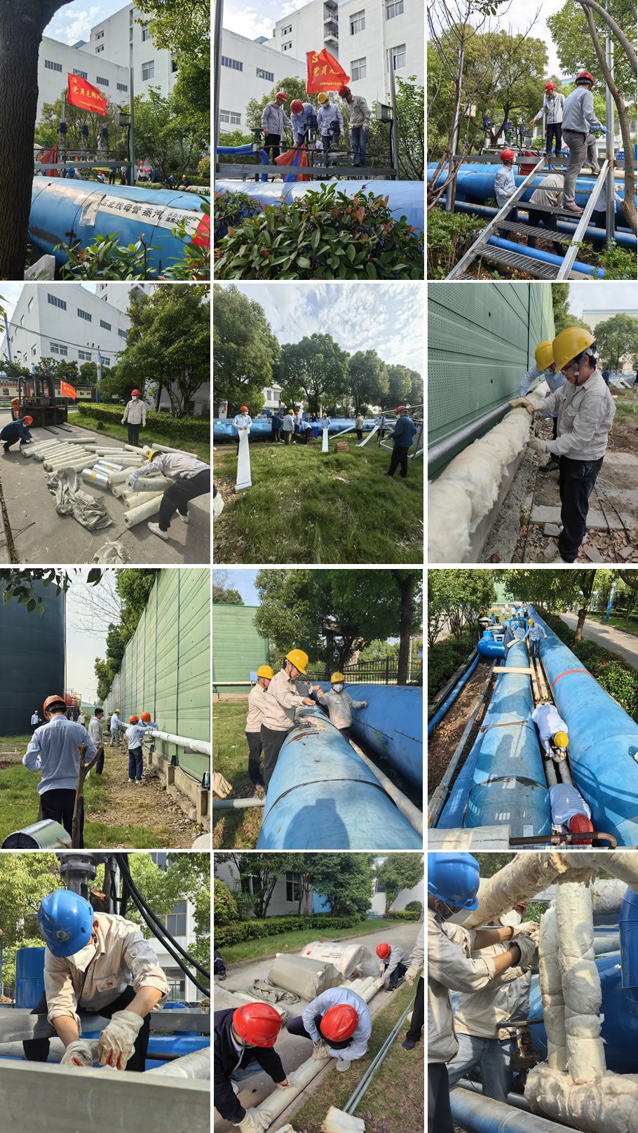 劳动现场的条件是艰苦的,气氛却是热火朝天的,炎热的天气下每个人都在认真专注的作业。大家分工协作,分段进行,保温过程井然有序,根据技术要求及时优化和细节改进,大家齐心协力拧成一股绳,为了共同的目标努力挥洒着智慧与汗水。
